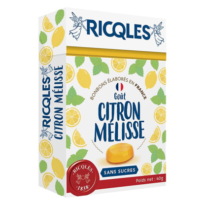 Ricqles élabore depuis 1838 des formules rafraîchissantes , aujourd'hui elle vous propose ses petits bonbons au goût citron-mélisse sans sucre.