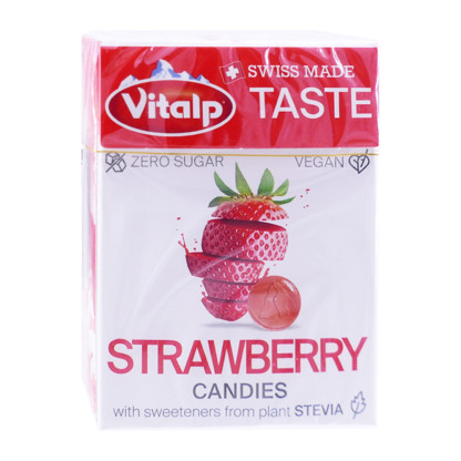 Bonbons sans sucre Stevia Strawberry discount de VITALP, les bonbons au goût de fraise dans votre parapharmacie en ligne à prix discount, pour un grand moment de gourmandise !