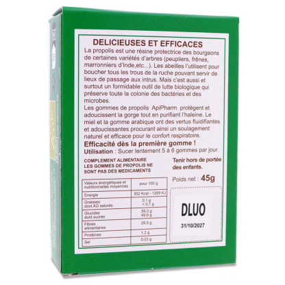 APIPHARM GOMMES PROPOLIS BIO 45G est disponible en vente en ligne à prix discount sur Pharmashopdiscount.