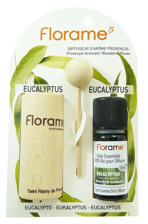 Diffuseur d’arômes provençal à l’Eucalyptus de FLORAME, le petit diffuseur pratique pour parfumer son intérieur (bureau, pièce de maison, voiture, placard,…) en toute discrétion.