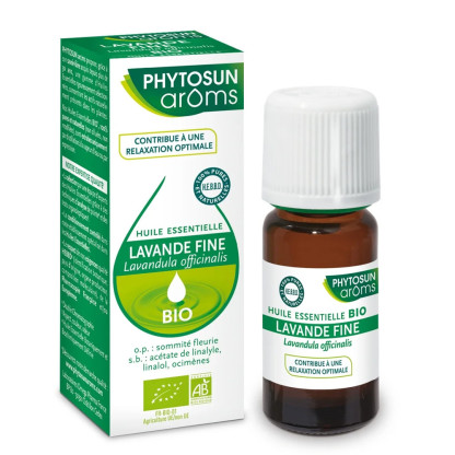Lavande Fine Huile Essentielle Relaxation des laboratoires PHYTOSUN AROMS, est une huile essentielle à base de lavande fine, qui aide à une relaxation optimale, 100% naturelle et BIO.