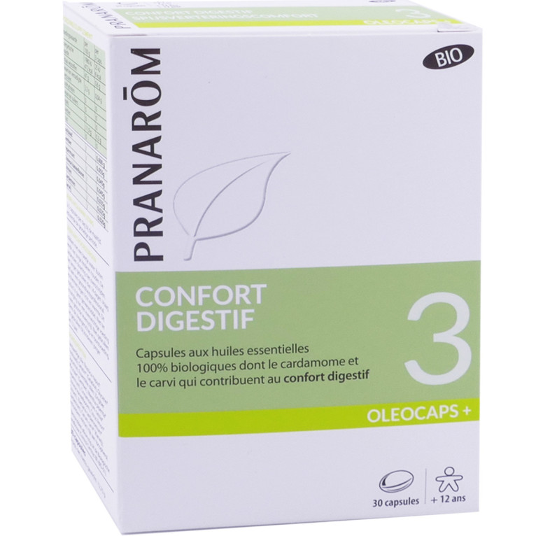Pranarôm Oléocaps 3 confort digestif aux huiles essentielles 100 % pures et naturelles pour aider à améliorer le confort digestif à prix discount.