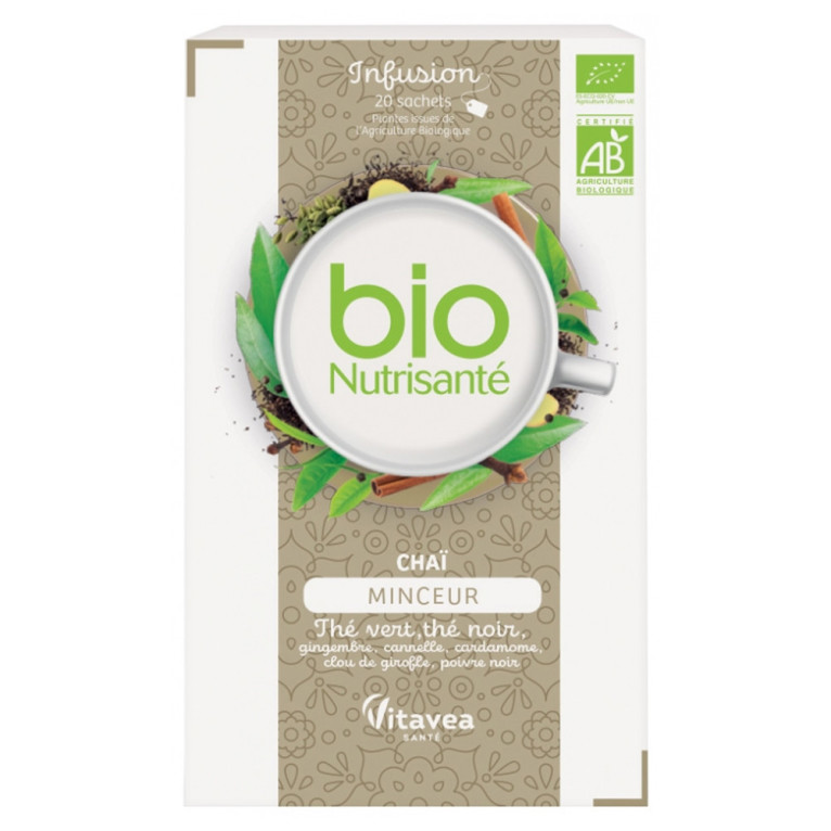 L’infusion Minceur Bio Chaï discount de NUTRISANTE, une délicieuse infusion conditionnée sous forme de sachets non blanchis au chlore, sans agrafe et sans colle disponible dans votre parapharmacie en ligne à prix discount.