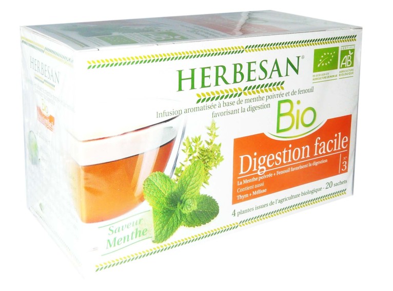 Infusion Bio Digestion Facile d’HERBESAN, la nature dans une infusion aromatisée à base de menthe poivrée et de fenouil pour favoriser la digestion.