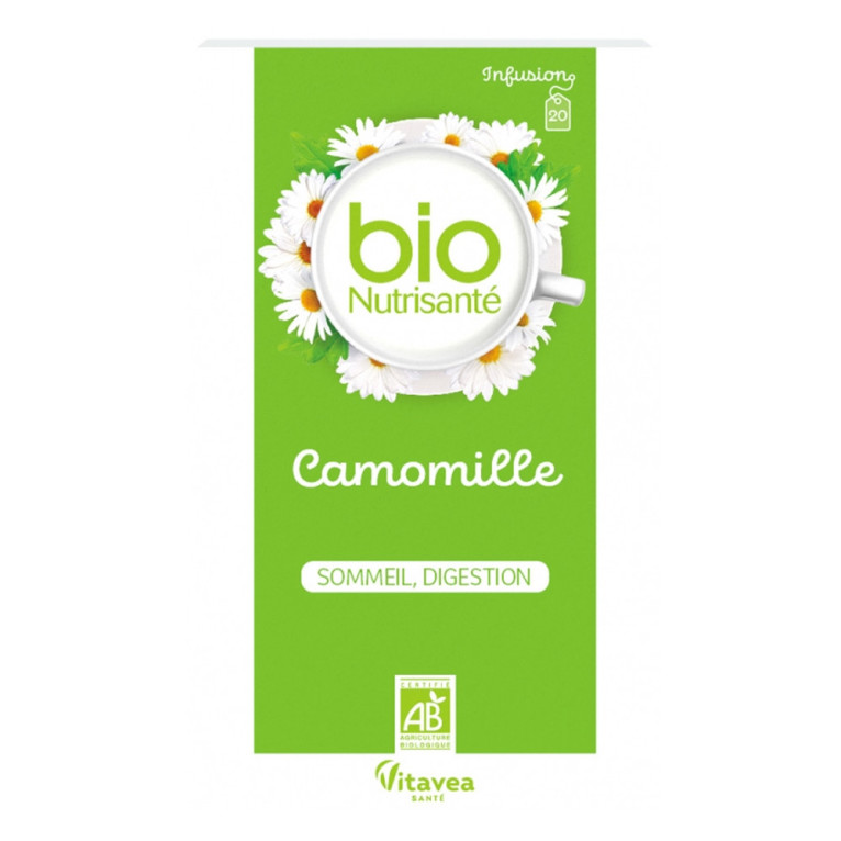 Les infusions Bio Nutrisanté 100% d’origine naturelle, sont formulées avec des plantes cultivées conformément aux exigences de l’agriculture biologique, dans le respect de l’environnement et sans utilisation d’OGM. Ces infusions conservent la pureté des plantes et sont garanties sans arôme artificiel. Les sachets-filtres sont élaborés avec du papier non blanchi au chlore et ne possèdent pas d’agrafe afin d’éviter tout phénomène d’oxydation. L’infusion bio NUTRISANTE Camomille est conseillée en fin de repas le soir. Elle facilite la digestion, apaise les tensions, favorise l’endormissement et assure un sommeil de qualité.