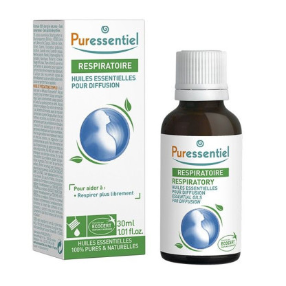 Le laboratoire PURESSENTIEL conçoit des produits d’aromathérapie et de cosmétique naturels et bio à base d’huiles essentielles naturelles et d’actifs bio pour retrouver le bien-être au quotidien. L’huile essentielle Diffuse Respi de PURESSENTIEL est à utiliser dans un diffuseur PURESSENTIEL afin de soulager les voies respiratoires encombrées lors de rhumes, bronchites,… et renforcer les défenses naturelles. En se diffusant, les 18 huiles essentielles contenues dans l’huile essentielle Diffuse Respi vont apaiser le mental, et assainir la pièce. Utiliser l’huile essentielle Diffuse Respi de PURESSENTIEL sera propice à la détente et à la respiration.