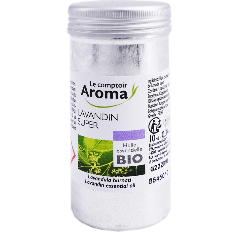 Produite à partir des sommités fleuries l'huile essentielle bio de Lavandin Super des Laboratoires GILBERT possède une composition similaire à la lavande officinale et un parfum aux notes légèrement camphrée, herbacée et fraîche. Le lavandin Super est un petit arbre que l'on retrouve à une altitude entre 0 et 800 m et qui est un hybride de la lavande aspic et de la lavande officinale. L'avis d'un professionnel de santé est fortement recommandé avant utilisation de cette huile.