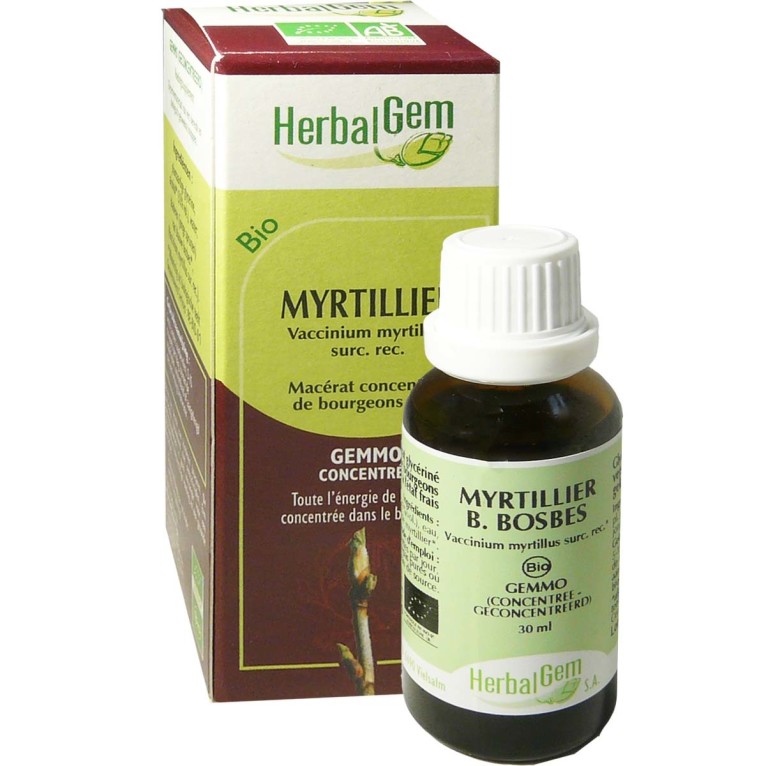 Myrtillier Gemmo Concentré BIO d’HERBALGEM, la gemmothérapie sous forme de complément alimentaire en gouttes buvables dans votre parapharmacie en ligne à prix discount.