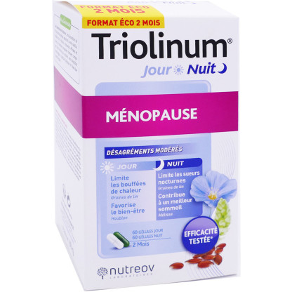 TRIOLINUM Ménopause Jour/Nuit discount de NUTREOV PHYSCIENCE, le complément alimentaire conditionné sous forme de gélules disponible dans votre parapharmacie en ligne à prix pas cher.