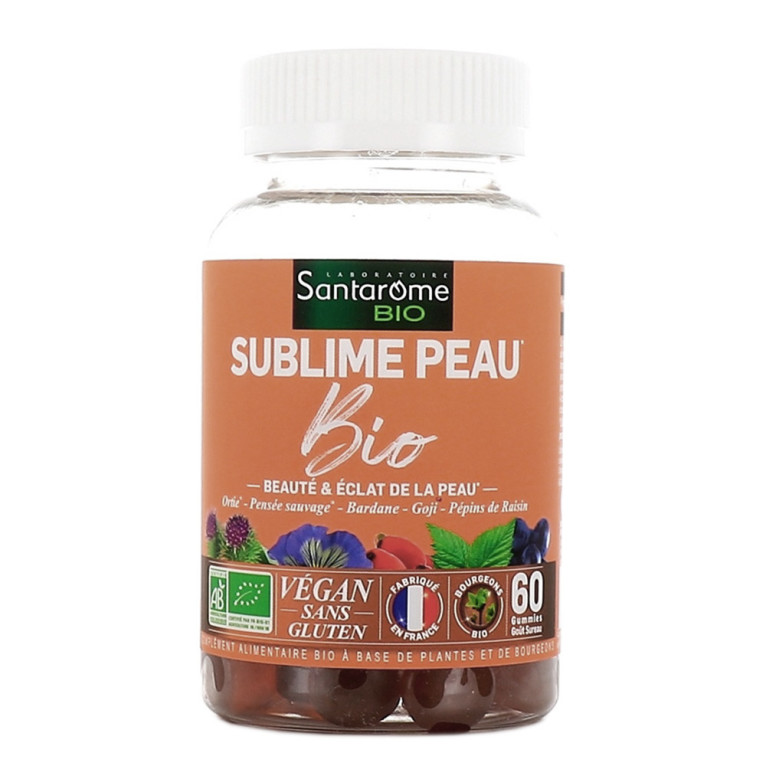 Sublime Peau Bio de SANTAROME discount, le meilleur de la nature, dans un complément alimentaire en gommes fruitées sureau, à base de plantes et de bourgeons Bio dans votre parapharmacie en ligne à prix discount. Adultes et enfants à partir de 12 ans