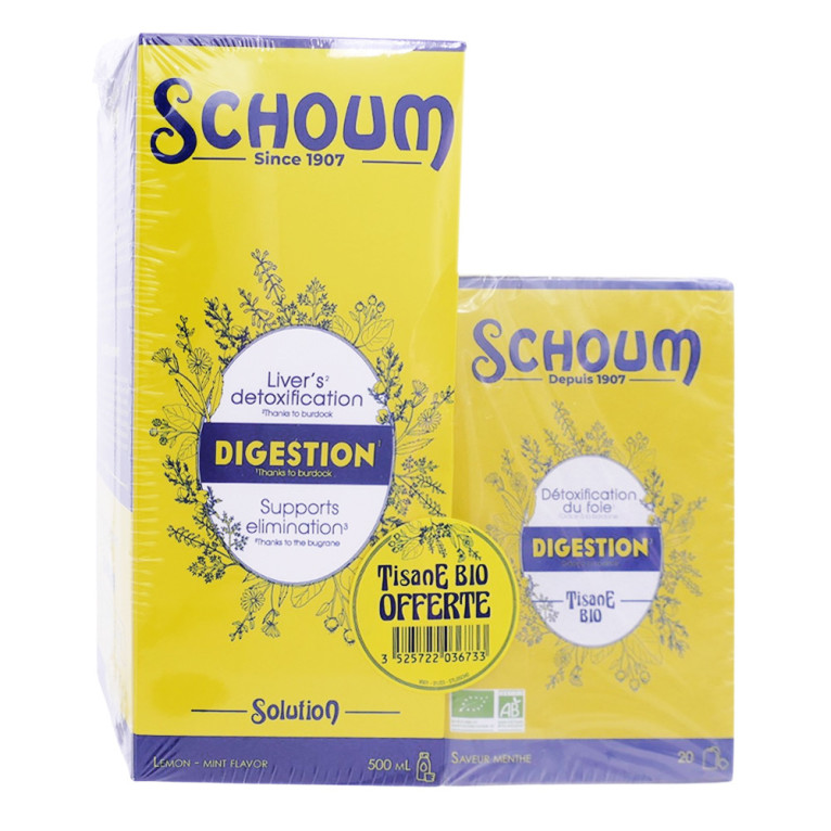 SCHOUM DIGESTION 500ML + TISANE BIO OFFERTE est disponible en vente en ligne à prix discount sur Pharmashopdiscount.