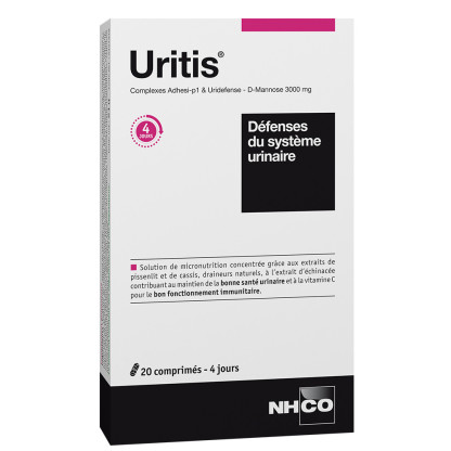 URITIS Défenses du système urinaire laboratoire NHCO Nutrition à prix discount, un complément alimentaire à base d’acides aminés, de vitamine C, et de plantes dont le romarin et le cassis qui contribue aux fonctions de drainage l’organisme dans votre parapharmacie en ligne.