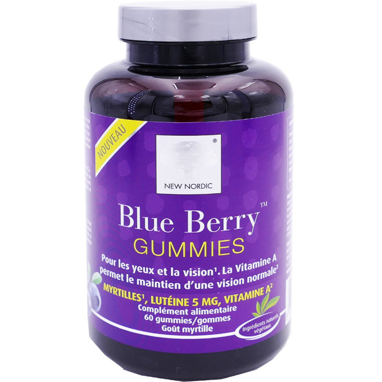 Chaque gummy Blue Berry contient des extraits concentrés de Myrtille, de Rose d’Inde apportant de la Lutéine naturelle et d’Euphraise associés à de la Vitamine A. Sans arôme ni colorant artificiels. Proposé en ligne à prix discount.