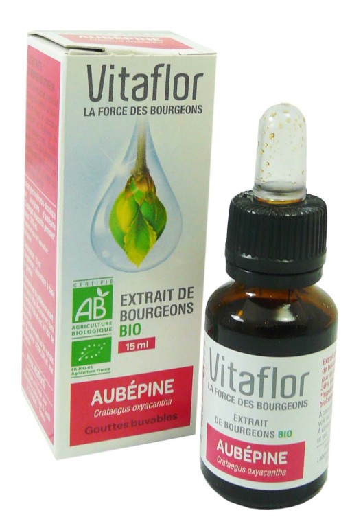 Extrait de Bourgeon bio d’Aubépine de VITAFLOR, dans votre parapharmacie en ligne à prix discount, le complément alimentaire à base de bourgeons, en compte-gouttes.
