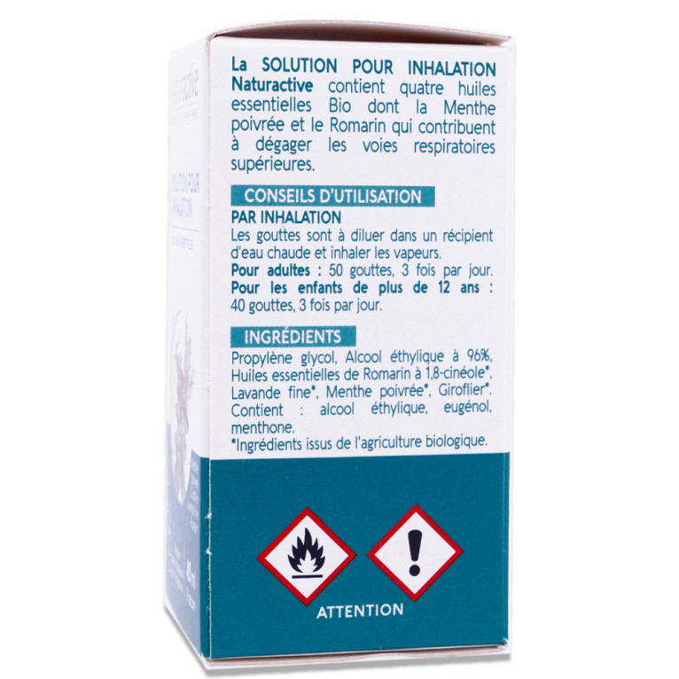 NATURACTIVE SOLUTION POUR INHALATION AUX HUILES ESSENTIELLES 45ML est en vente en ligne sur le site de votre parapharmacie à prix discount, en solution pour inhalation destinée à un usage ponctuel en cas de voies respiratoires encombrées.