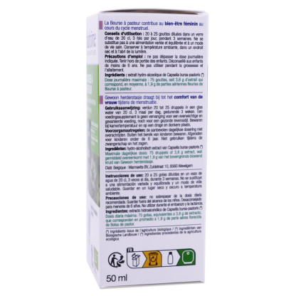 Ingrédients : extrait hydro-alcoolique de Capsella bursa-pastoris*(*) Ingrédients issus de l’agriculture biologique