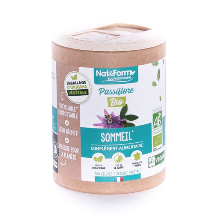 NAT & FORM PASSIFLORE BIO SOMMEIL 200 GELULES est un complément alimentaire en vente en ligne, sur le site de votre parapharmacie à prix discount.