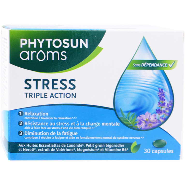 PHYTOSUN AROMS STRESS TRIPLE ACTION 30 CAPSULES est disponible en vente en ligne à prix discount.