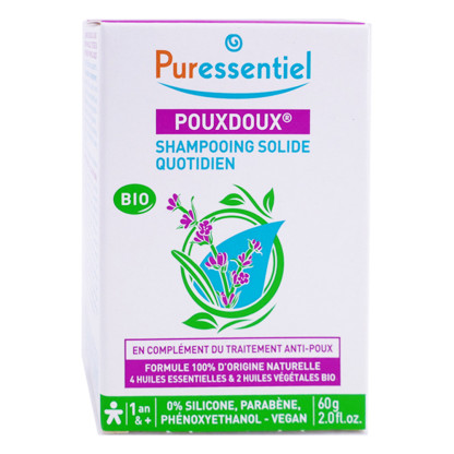 Découvrez le Pouxdoux Shampooing Solide 60g, un produit de qualité du laboratoire Puressentiel.