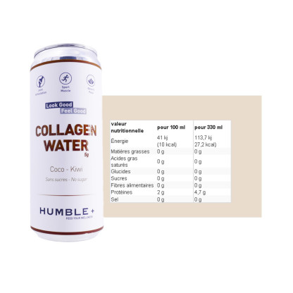 HUMBLE + COLLAGEN WATER COCO KIWI 330ML est en vente en ligne, boisson pétillante à base de collagène (solution buvable - collagen drink), sur le site de votre parapharmacie à prix discount. Découvrez cette délicieuse boisson pétillante à base de collagène, idéale à consommer au quotidien.
