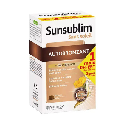 Sunsublim Sans Soleil Autobronzant du laboratoire NUTREOV, le complément alimentaire composé de vitamines, en capsules, dans votre parapharmacie en ligne à prix discount.