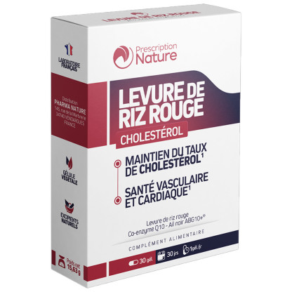 Levure de riz rouge de Prescription nature est un complément alimentaire en gélules. Sa formule associe du coenzyme Q10 et de la levure de riz rouge, un ingrédient issu de la fermentation de levure rouge sur la farine de riz utilisé depuis des siècles en Chine contenant de la monacoline K. Les gélules de ce complément alimentaire sont d'origine végétale.