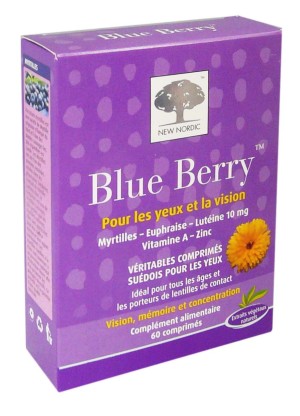 Blue Berry Pour les Yeux et la Vision du laboratoire NEW NORDIC, un complément alimentaire composé de plantes, en comprimés, dans votre parapharmacie en ligne à prix discount.