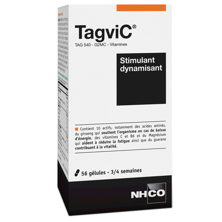 TAGVIC Stimulant dynamisant Laboratoire NHCO, un complément alimentaire à base d’acides aminés, de Magnésium et de vitamines C et B6 qui contribuent à réduire la fatigue et de ginseng dans votre parapharmacie en ligne.