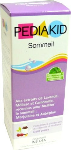 PEDIAKID Sommeil Sirop d’agave de INELDEA, est un complément alimentaire au goût cerise, aux extraits de lavande, marjolaine, aubépine, camomille et mélisse. La mélisse participe à une relaxation optimale et favorise l'endormissement et l'Aubépine participe à réduire la nervosité et à trouver un meilleur sommeil. Du Manganèse, du Magnésium ainsi que du Phosphore complètent la formule. Ce sirop est aromatisé à la cerise et est élaboré sans gluten, sans allergène, sans ingrédients d’origine animale, sans OGM, sans arôme ni colorant artificiels.