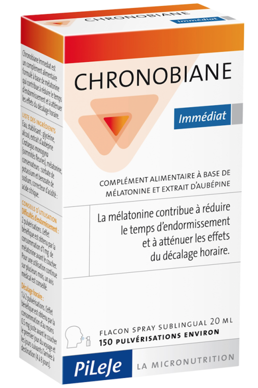 CHRONOBIANE Immédiat du laboratoire PILEJE à prix discount, en vente dans votre parapharmacie en ligne discount, un complément alimentaire conçu à partir de Mélatonine qui contribue à réduire le temps d’endormissement.
