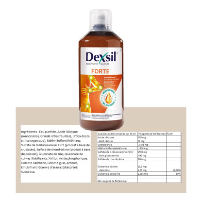 DEXSIL BIOACTIVATED SILICIUM FORTE 500ML est un complément alimentaire en vente en ligne, sur le site de votre parapharmacie à prix discount.