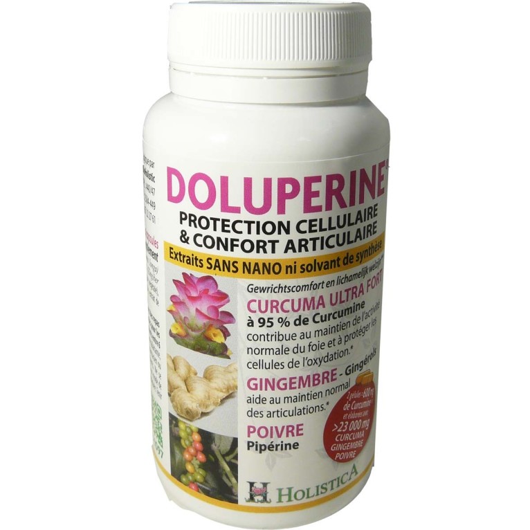DOLUPERINE Protection cellulaire et confort articulaire du laboratoire HOLISTICA discount, le complément alimentaire à base d’extrait de curcuma et gingembre naturels dans votre parapharmacie en ligne à prix discount.