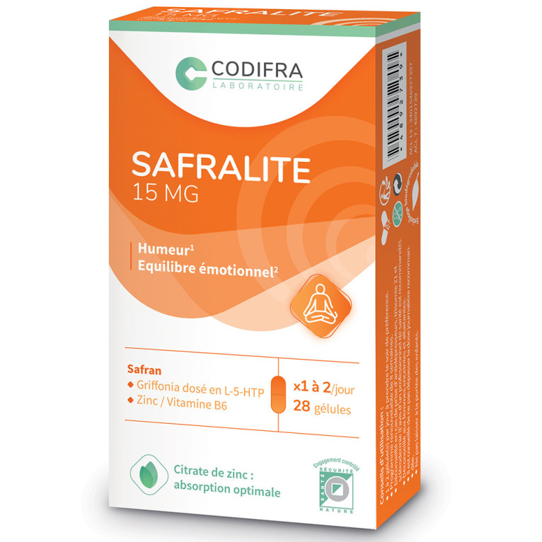 Safralite 15Mg Absorption du laboratoire CODIFRA, un complément alimentaire composé de plantes et de minéraux, en gélules, dans votre parapharmacie en ligne à prix discount.