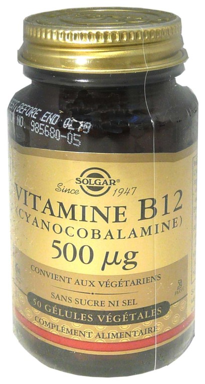 Le laboratoire SOLGAR conçoit des compléments alimentaires pour tous avec des ingrédients naturels et convenant aux végétariens pour complémenter les besoins de l’organisme. Vitamine B12 est un complément alimentaire qui apporte de la cyanocobalamine (vitamine B12) dosée à 500µg par gélule. La vitamine B12 participe au métabolisme énergétique, au fonctionnement normal du système immunitaire et nerveux ainsi qu'a la réduction de la fatigue. Convient aux végétariens. Sans gluten. Garanti Kasher & Halal
