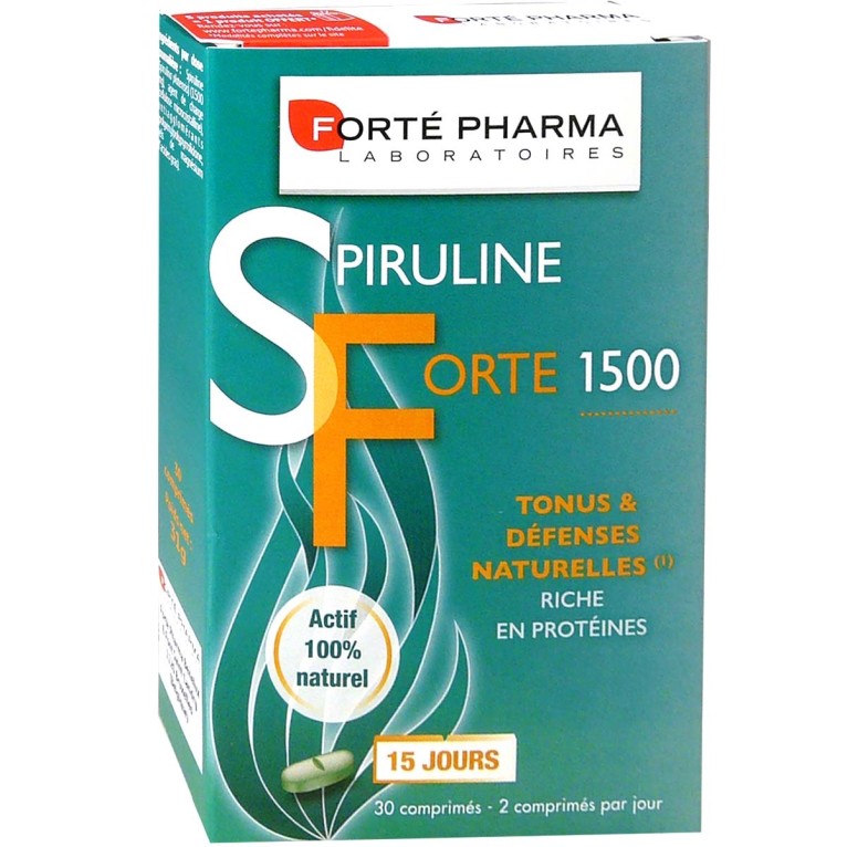 Depuis 1999, les Laboratoires FORTÉ PHARMA développent des compléments alimentaires efficaces et innovants, aux formules issues de la recherche en nutrition cellulaire, pour contribuer aux ressources des utilisateurs. L’univers santé de FORTÉ PHARMA propose des produits conçus pour accompagner le quotidien . Spiruline Forte 1500 de FORTÉ PHARMA est un complément alimentaire conditionné sous forme de comprimés, à base de spiruline (1500mg par jour) qui est une algue microscopique bleue 100% naturelle. La spiruline va contribuer à aider les défenses naturelles et va participer au soutien du système immunitaire.