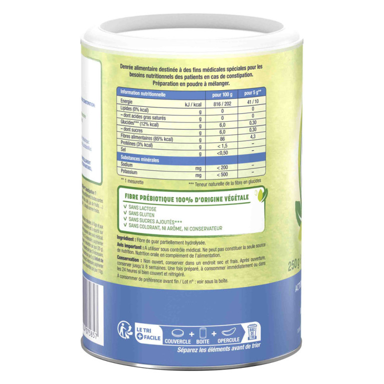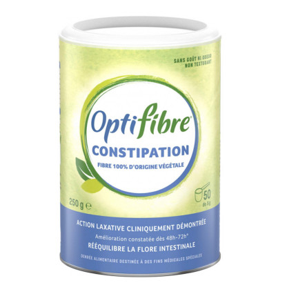 Le laboratoire NESTLE HealthScience conçoit des produits nutritionnels pour les personnes malades ou ayant des difficultés à se nourrir. Cet aliment diététique sous forme de poudre à dissoudre rééquilibre la flore intestinale et favorise la bonne évacuation des selles. Composé de fibres de guar qui est un extrait de la graine de la légumineuse Cyamposis tetragonologa 100% naturelles hydrolysées, Optifibre va réguler le transit, participer à l’équilibre de la flore intestinal et faciliter l’évacuation des selles. Rapidement le confort digestif et intestinal est restauré. Sans goût, ni odeur, Optifibre permet une prise plus agréable en se mélangeant dans les boissons (thé, café,…) ou dans l’alimentation (purée, yaourt,…)