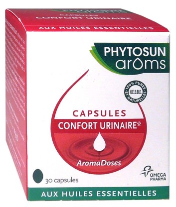 Capsules Confort urinaire de PHYTOSUN AROMS, un complément alimentaire sous forme de capsules à base d’huiles essentielles, dans votre parapharmacie en ligne à prix discount.
