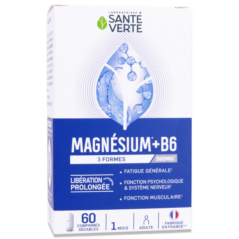 SANTE VERTE MEGNESIUM + B6 60 COMPRIMES est disponible en vente en ligne à prix discount sur Pharmashopdiscount.