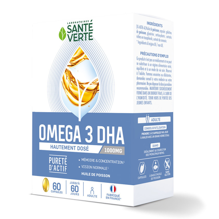 OMEGA 3 1000mg DHA de SANTE VERTE, le complément alimentaire en capsules dans votre parapharmacie en ligne à prix discount.