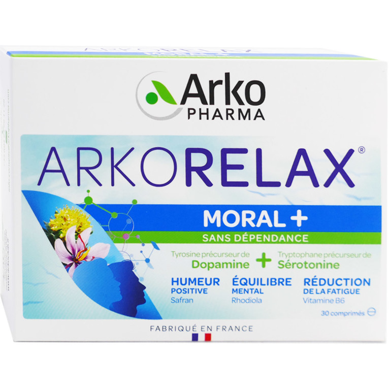 ARKOPHARMA ARKORELAX MORAL+ 30 COMPRIMES en vente en ligne, sur le site de votre parapharmacie à prix discount. Découvrez les ARKOPHARMA ARKORELAX MORAL+, un complément alimentaire développé par le laboratoire Arkopharma.