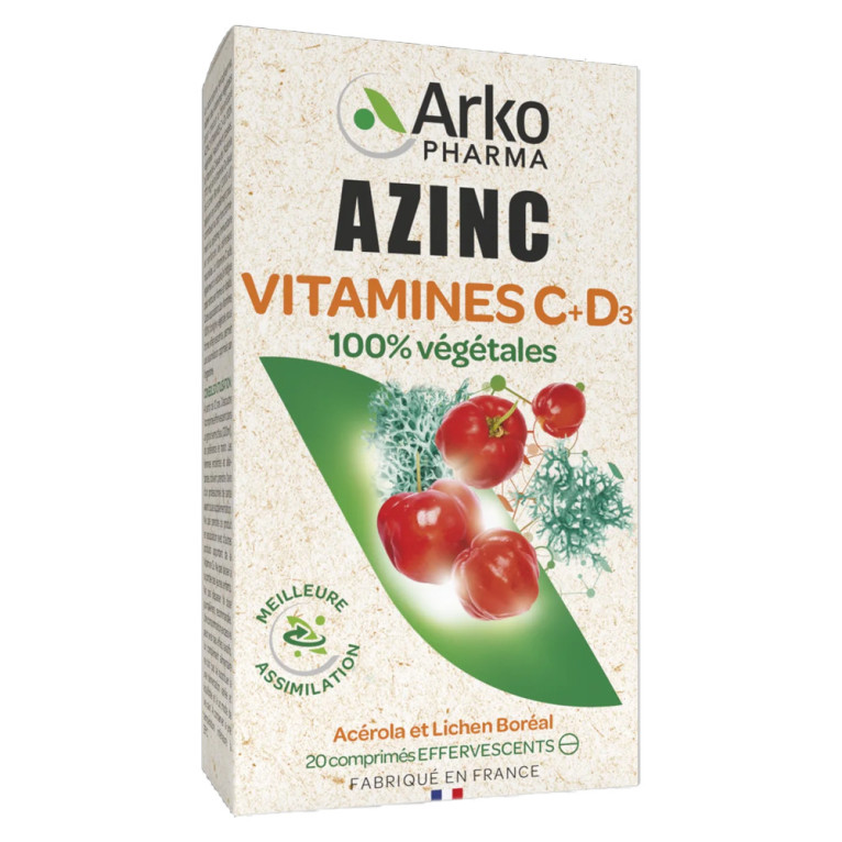 ARKOPHARMA AZINC VITAMINES C+D3 20 COMPRIMES EFFERVESCENTS, en vente en ligne sur le site de votre parapharmacie à prix discount, un duo de vitamines 100% d'origine végétale.