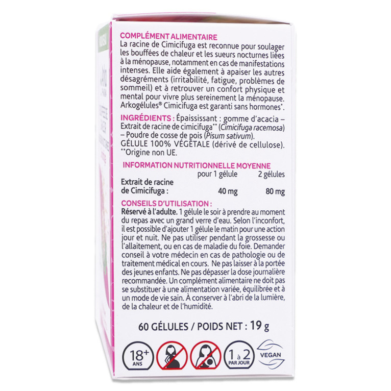 ARKOPHARMA CIMICIFUGA BOUFFEES DE CHALEURS 60 GELULES est disponible en vente en ligne à prix discount sur Pharmashopdiscount.
