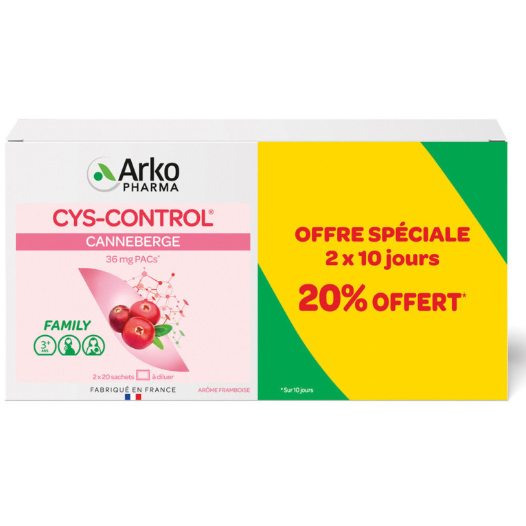 Cys-control est un complément alimentaire à base de Canneberge. Cys control apporte journalièrement 36 mg de proanthocyanidines de Canneberge ou cranberry originaire d'Amérique du nord. La Canneberge est une plante à petite baie rouge. Elle pousse naturellement dans les tourbières, les forêts d'altitude, les mousses des landes tourbeuses, voire les prés sableux.