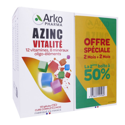 Azinc Forme et vitalité d'ARKOPHARMA, le complément alimentaire en gélules à base de 12 vitamines dans votre parapharmacie en ligne à prix pas cher.