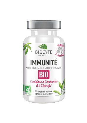 IMMUNITÉ BIO Biocyte Organic , votre complément alimentaire discount BIO en comprimés à croquer pour toute la famille (enfants à partir de 6 ans) arôme Citron dans votre parapharmacie discount en ligne.