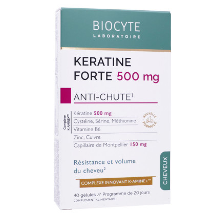 BIOCYTE KERATINE FORTE 500MG ANTI CHUTE 40 GÉLULES est disponible en vente en ligne sur le site de votre parapharmacie à prix discount.