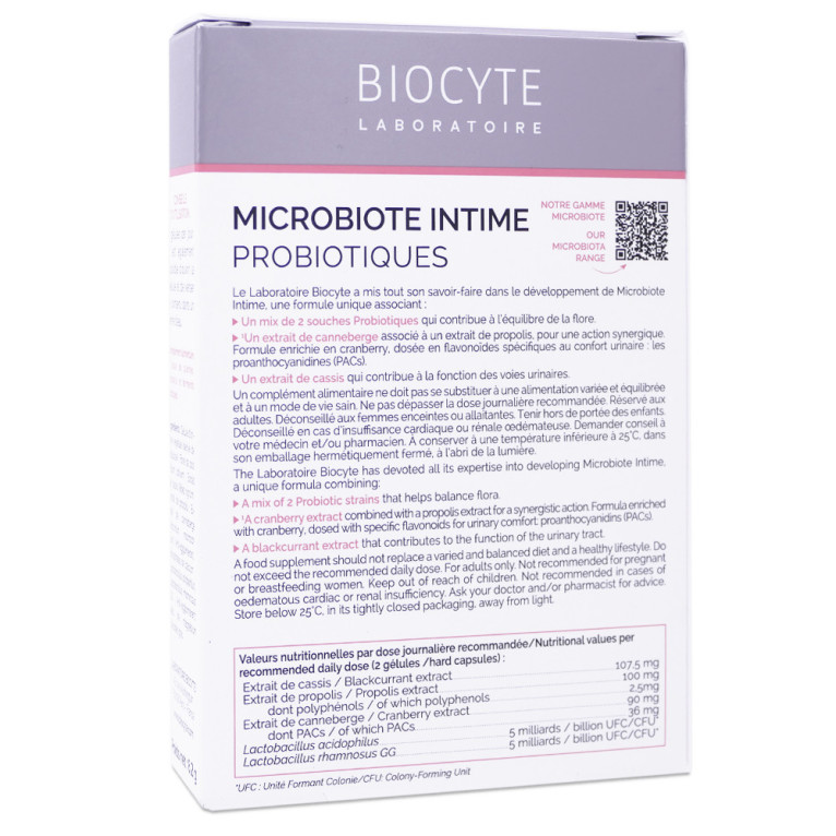 BIOCYTE MICROBIOTE INTIME PROBIOTIQUES 20 GÉLULES est disponible en vente en ligne à prix discount sur Pharmashopdiscount.