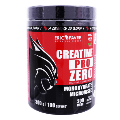 Conçu par le laboratoire Eric Favre, reconnu pour son expertise dans le domaine des compléments alimentaires, ce produit contient de la créatine, un ingrédient qui contribue au soutien des performances physiques lors d'exercices intenses et répétés. La formule Pro Zero est spécialement élaborée pour répondre aux besoins des sportifs souhaitant optimiser leur entraînement.