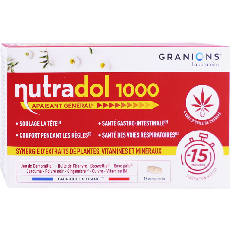 NUTRADOL 1000 discount des laboratoires GRANIONS, un complément alimentaire en comprimés à base d’extraits de plantes, cuivre et vitamine B6, dans votre parapharmacie en ligne à prix discount.