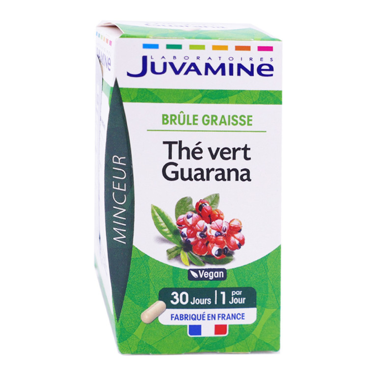 Fabriqué par le laboratoire Juvamine, ce complément alimentaire est spécialement conçu pour favoriser la combustion des graisses grâce à sa formule à base de thé vert et de guarana.